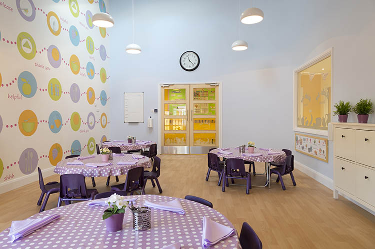 The project involved the demolition of a community centre and construction of a single storey, 125 place nursery building. The nursery is separated into seven playrooms, each with its own access to landscaped garden areas.