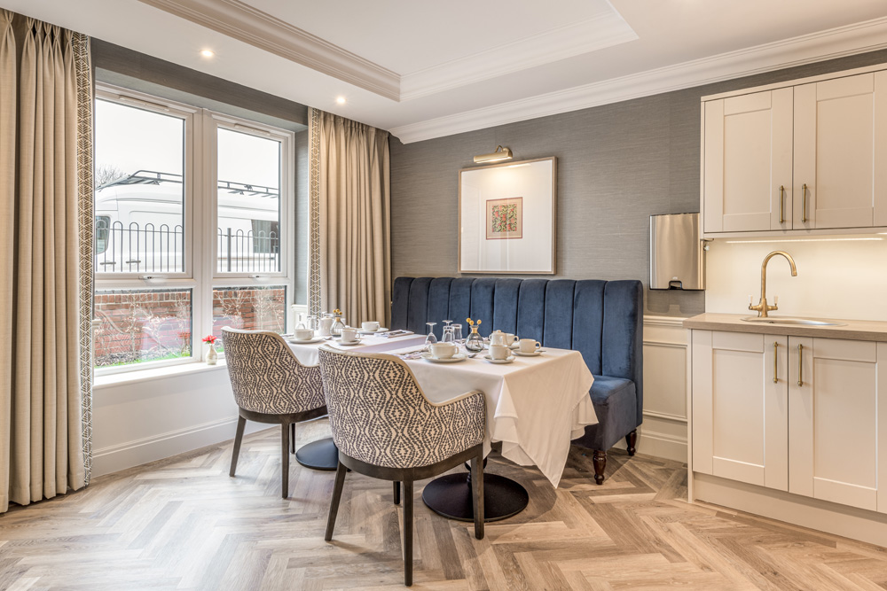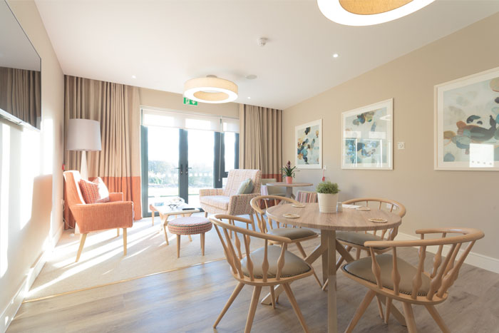 The home’s superb facilities include a formal restaurant, hair and beauty salon, plus a “wellness lodge” with a hydrotherapy pool set in the beautifully landscaped gardens.