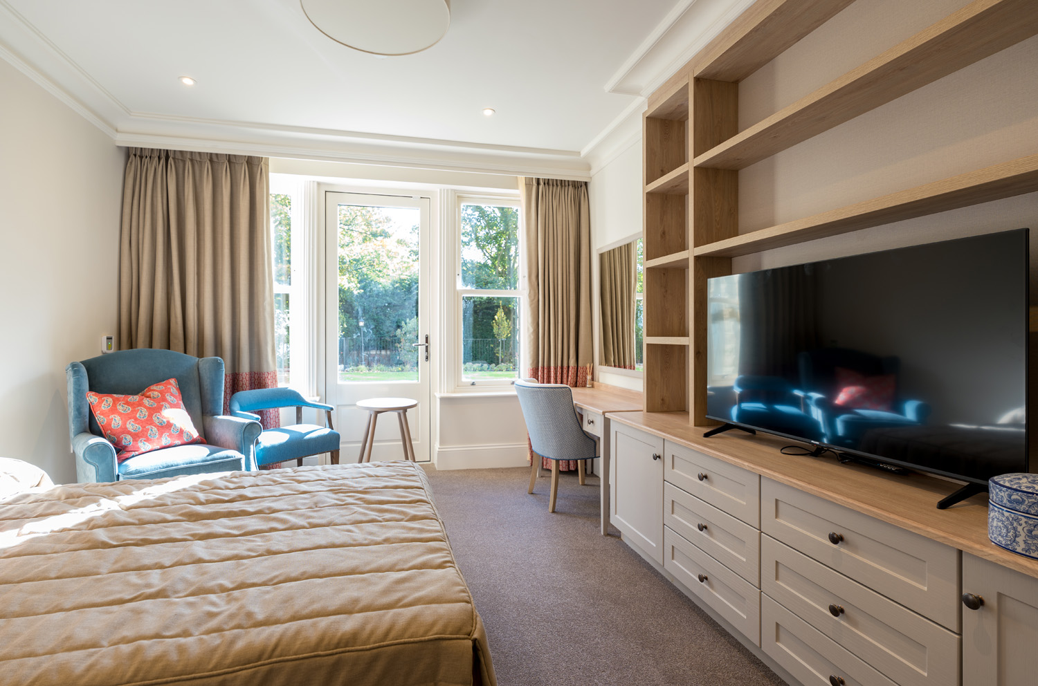 The build took just under two years to complete, with initial work beginning in February 2023 and finishing at the beginning of October 2024. The Manor House has been meticulously constructed and we worked closely with the architects, ARP Design, and structural engineer, JC Consulting, to create a building that would reflect the amazing space surrounding it. Light, spacious, elegant, it offers first class luxuriousness to its new residents. The home has sixty-five bedrooms over three floors as well as a wide range of impressive facilities including various public and private dining spaces, an outdoor terrace & balcony, beauty salon, landscaped gardens, and craft room, to name a few.