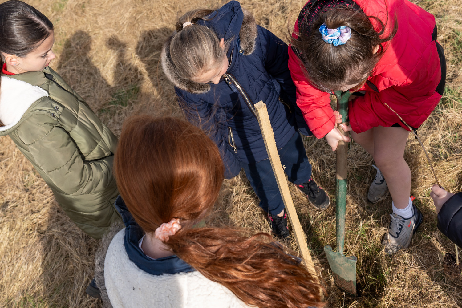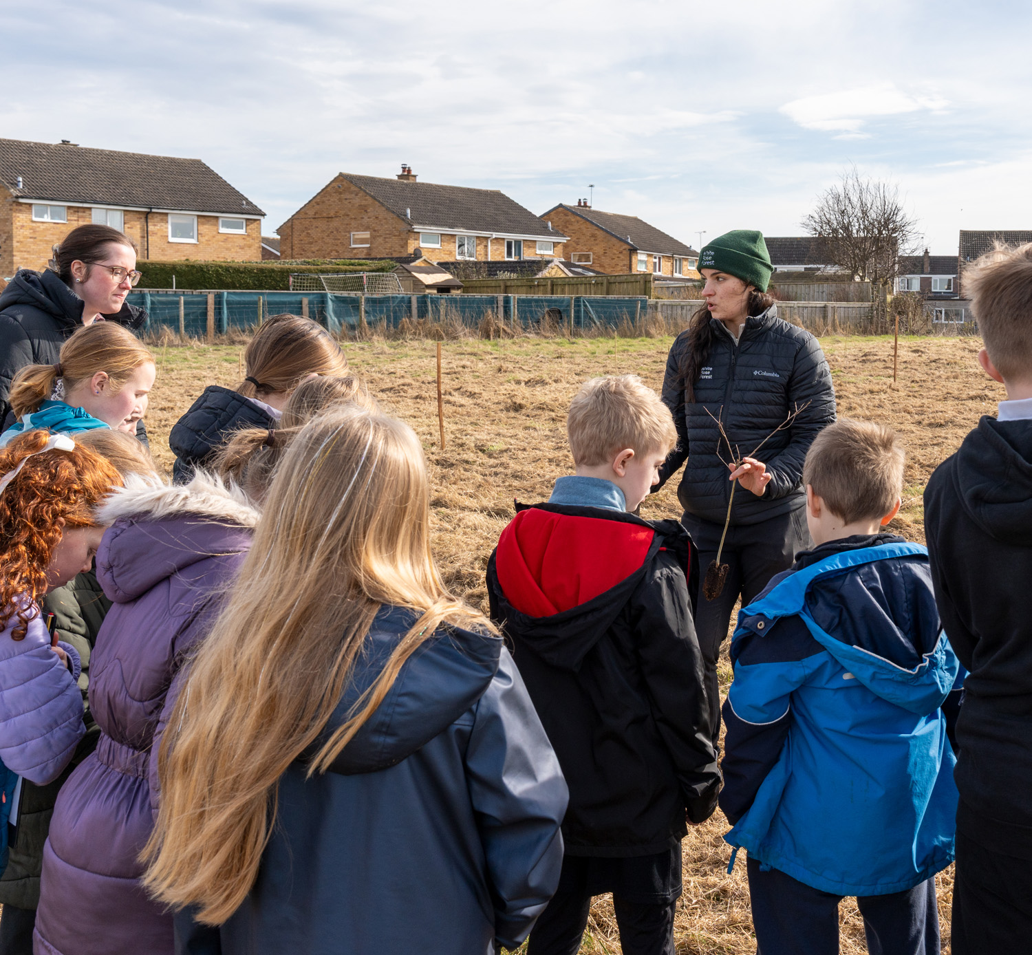 On Wednesday, 5th March 2025, Northallerton residents, 78 children from Romanby Primary School, members of the Romanby Parish Council, Northallerton BID, the WI, and employees from FT Construction Group came together to plant trees. Many participants used the ‘What3words’ app to pinpoint the exact location of their personally planted tree, ensuring they can return to see its growth in years to come.